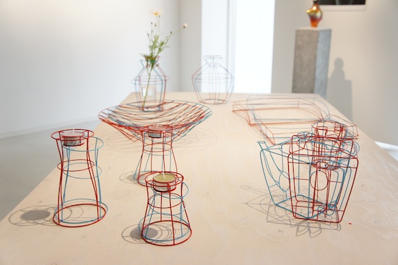 3Dワイヤーフレームのようなテーブルウエアや、象や自動車が入った器など、素材、技法、造形と、アイデアが満載で、その思考方法が楽しく伝わってくる展示会でした。